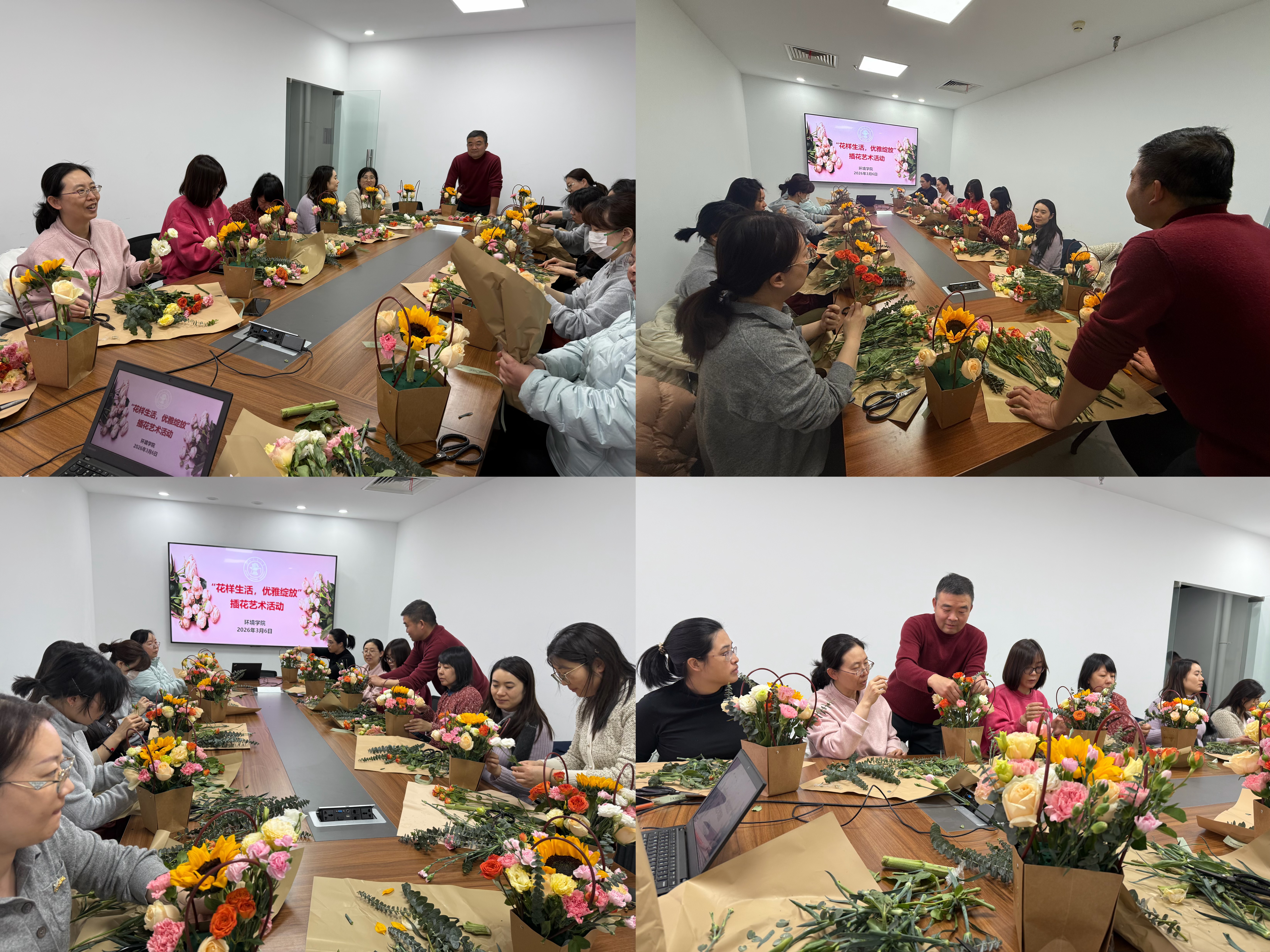 花香氤氲,春意渐浓。为庆祝第116个“三八”国际劳动妇女节,丰富女教职工的精神文化生活,3月6日下午,碳中和与日本av片 在科技大厦1404-1会议室举办“花样生活,优雅绽放”主题插花艺术活动。学院多名教职工踊跃参与,学院党委书记赵艳娥参加活动。大家齐聚一堂,在花香中共赴一场优雅的春日之约。